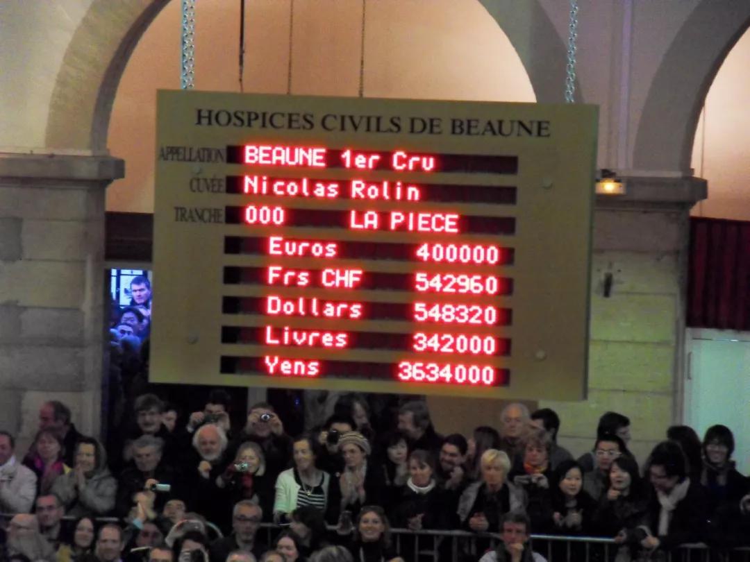 在拍卖现场,所有酒款被按照地块划分成不同分组(Lot)进行,分组名称由葡萄园名称以及一位对济贫院有突出贡献的先人的名字组成。以Hospices du Beaune Volnay Santenots Premier Cru Cuvee Gauvain为例,这个分组包括Les Plures和Santenots du Milieu两个地块,Volnay Santenots是产区名称,而Gauvain则是著名勃艮第慈善家,生前几乎将所有财产都捐赠给了济贫院。