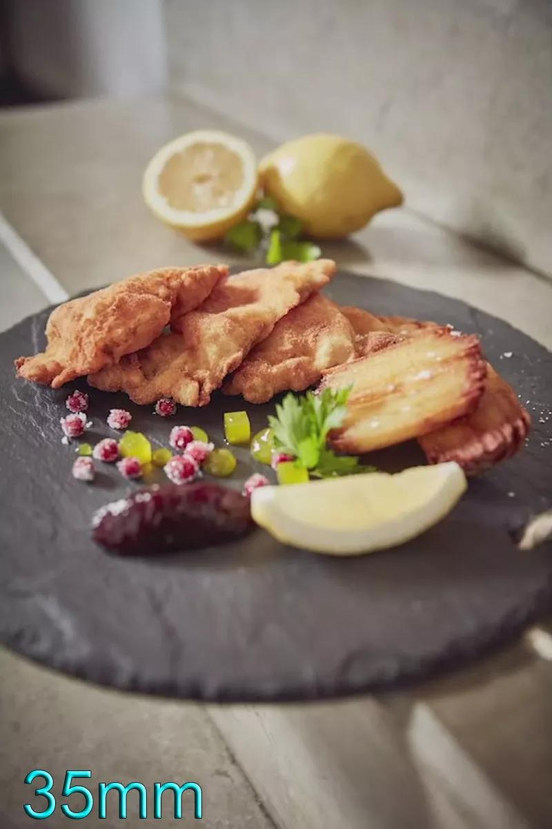 首先 35mm 广角。广角镜头的最显著特定是“视野开阔”——但对于拍摄美食这一题材来说,这一点意义不大;除去这一方面,广角镜头还存在畸变失真严重,焦外虚化能力较弱的特点。