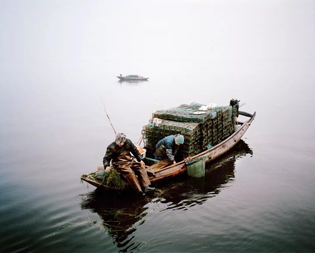 湖北洪湖,一对捕虾的夫妇