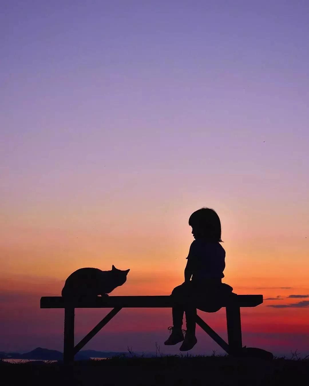 在梦幻般的风景下,孩子的背影或者剪影成为了画面的视觉焦点,这是梶原纪之作品的最大特点。