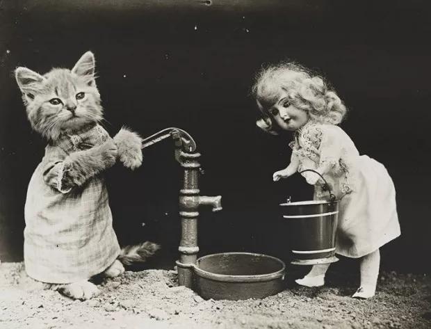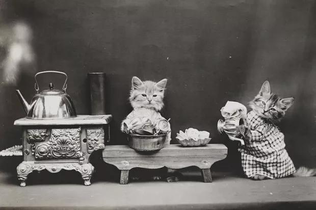 或许你和摄影君一样好奇,他是否涉嫌虐待、“摆拍”这些小猫咪?在没有高速快门和感光度的年代,他是如何完成拍摄的?
