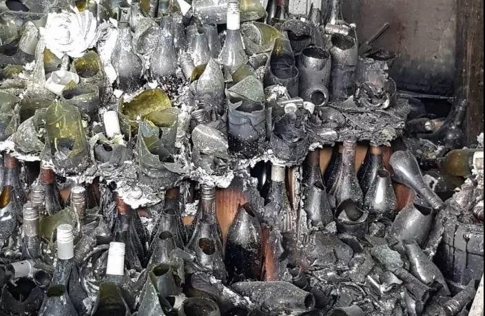 ▲ 爆炸的葡萄酒瓶上覆盖着厚厚的一层山火灰烬