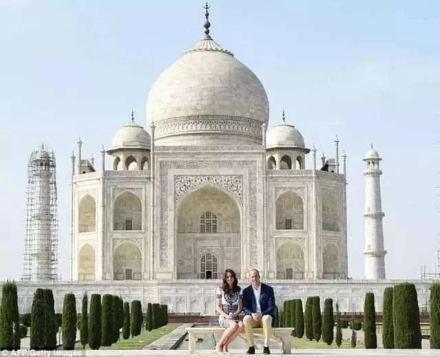2016年,威廉王子和凯特王妃一起访问了印度,他们悄悄去了泰姬陵,拍了一张合影。