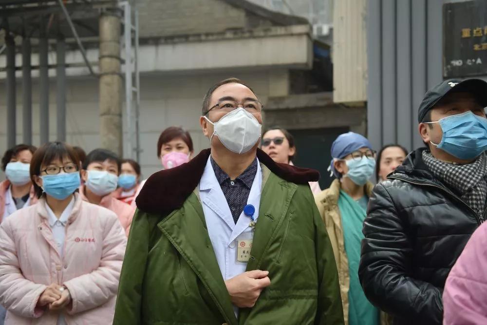 1月26日,北京医院的医护人员目送援鄂抗疫医疗队队员。
