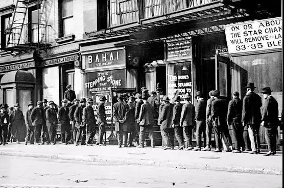 所以,1929年,世界大战结束才10年,真正的经济危机如约而至。破坏力强悍到世界大战都只是预演。美国的工业水平几个月就倒退到19世纪,银行业破产,410亿存款去挤兑60亿现金,总统开支票都兑不到纸币。德国失业人口加半失业人口占了总数的2/3。第一次世界大战期间,英国咬牙顶住了金本位,等到大萧条来也也得废除。从1929年到1933年,全世界再次以为资本主义要结束了。