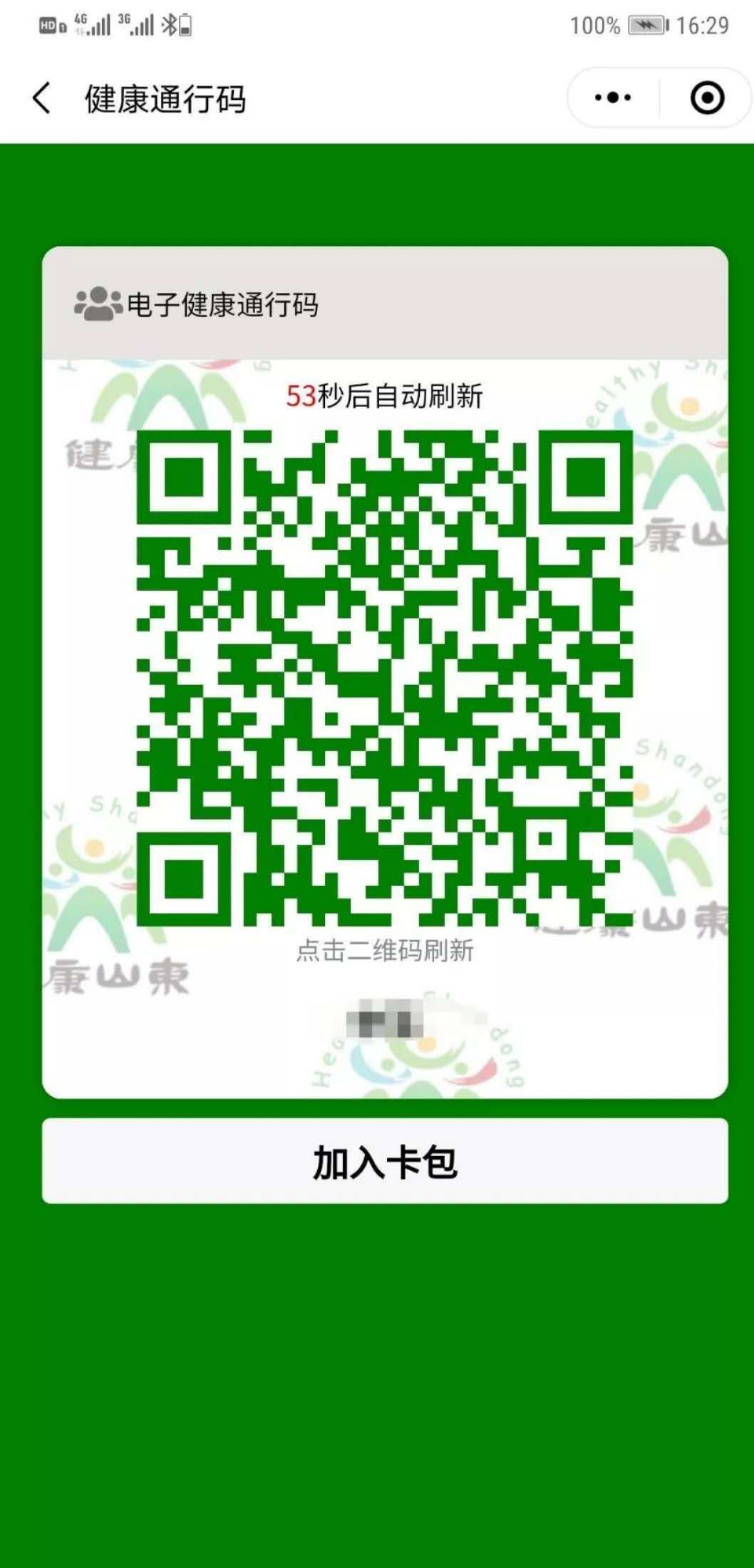 健康通行码形成以后,放入卡包。在微信卡包里就会自动生成一张个人专属“电子健康卡”。这张卡是我市百姓看病就医唯一入口,将在我市医疗单位通用,实现全流程手机端就诊,同时也将收录本人全生命周期健康档案。