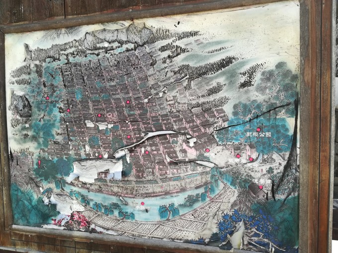 村口的全庄地图,推荐停车在庄门,庄门进庄门出,幸存古屋集中在中心巷道东侧,南边主要是花田。