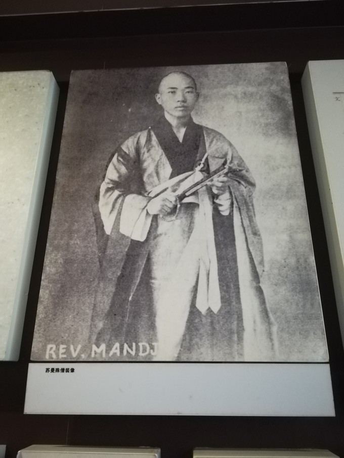 雕像左边是苏曼殊的纪念馆,陈列了几幅苏曼殊书画及一些资料的复制品。