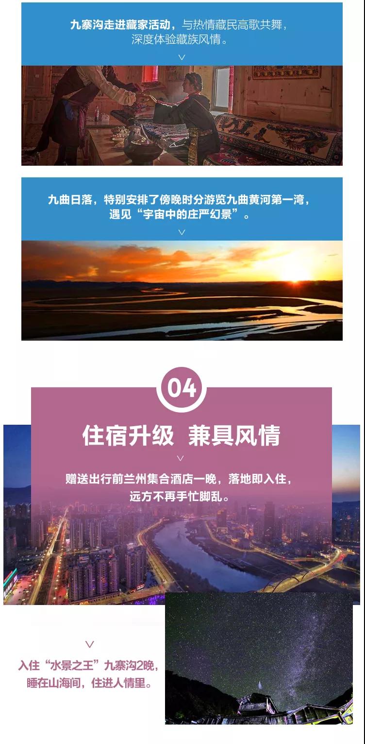 3、九寨沟面积较大游客需求不一,因此主要以游客自助游形式游览,如无导游陪同望您谅解。游览开始前导游会与您约定好集合时间,请务必按时到达指定地点,避免耽误大家接下来的行程;