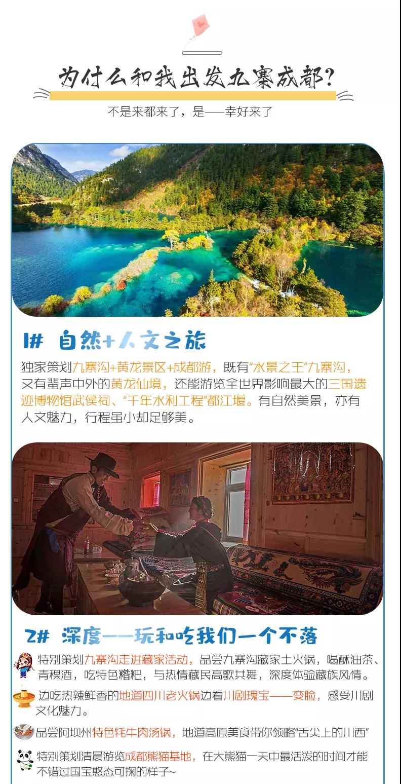 3、九寨沟面积较大游客需求不一,因此主要以游客自助游形式游览,如无导游陪同望您谅解。游览开始前导游会与您约定好集合时间,请务必按时到达指定地点,避免耽误大家接下来的行程;