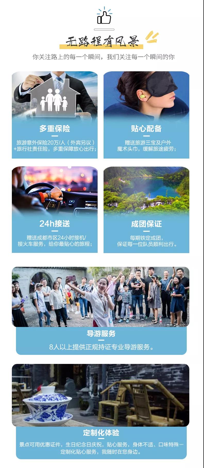 1、关于车辆交通:目前四川旅游市场8座以下车辆无法办理旅游牌照,请游客知悉,以此理由提起的投诉我方拒不受理,望您谅解。