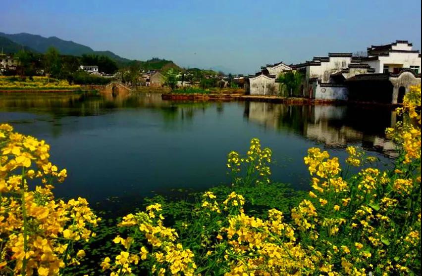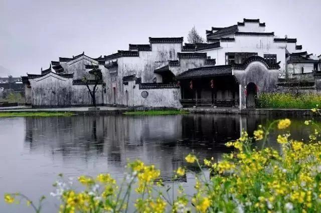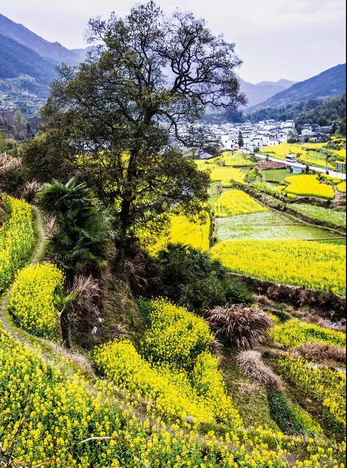 春天来临时,漫天金黄的油菜花将水墨色的徽派建筑照耀着,白墙青瓦反射着微黄色的光,细看之下,还有几枝桃花点缀其中。村里袅袅炊烟一直飘到了青色的山上,与山上的烟雾纠缠在一起。这大概才是徽州真正的模样。
