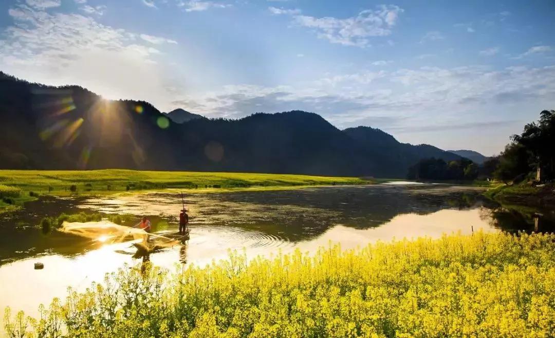 早餐后集合赴新安江山水画廊【120公里】,三月初春,在这个繁花似锦的季节,金黄的油菜花铺满岸堤,左边的油菜花规规整整地铺满田间,新安江流淌而过,蓝天、白云、春江、花海、小舟、民居,如诗如画;右边的油菜花一直延伸到山边,间或有几簇映山红,山花、茶树、桃花,让人宁静悠远。