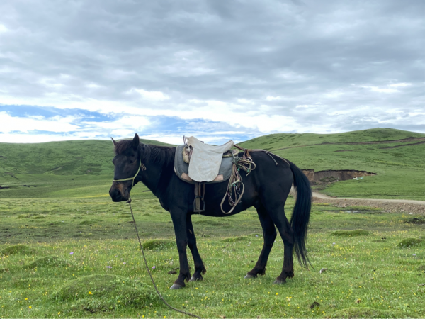 和路边别的草原差别不大,可以骑马的。但是团友劝说有受伤事例,考虑到自己不会骑马、没有护具,就没有上了。但是看到小牧民不用马具就扬长而去,还是留下了羡慕的泪水。