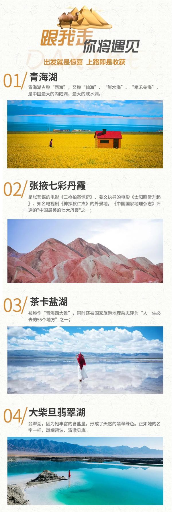 丹霞地质公园+嘉峪关+敦煌+莫高窟+鸣沙山月牙泉+阿克塞石油小镇+大柴旦翡翠湖+柴达木盆地+茶卡盐湖+青海湖二郎剑景区+塔尔寺