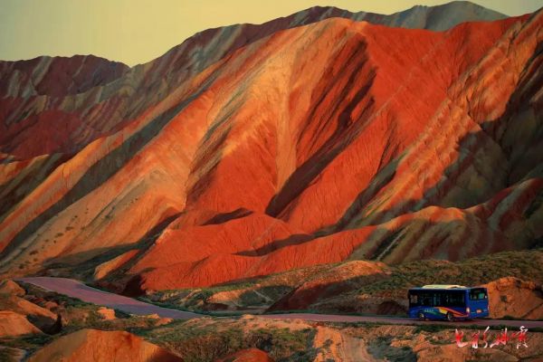 早起我们告别兰州前往张掖【丹霞地质公园】,这里的自然景观得天独厚,是中国丹霞地貌发育最大最好、地貌造型最丰富的地区之一。景区还是张艺谋的电影《三枪拍案惊奇》、姜文执导的电影《太阳照常升起》、知名电视剧《神探狄仁杰》的外景地。2005年11月由中国地理杂志社与全国34家媒体联合举办的“中国最美的地方”评选活动中,当选为“中国最美的七大丹霞”之—。如果天气晴好,在这里可以观赏到一场唯美的落日盛宴。感受落日的余晖落在起伏的丘陵上,晚霞般的大地与落日交相辉映,见惯了城市中的钢筋混凝土,此时不由的心神也会感到空旷了。