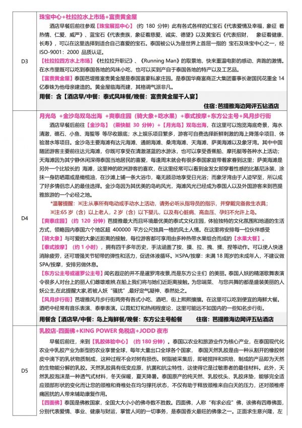 泰国6天5夜游 聊城出发 纯玩 无购物 曼谷 芭提雅 珊瑚岛 金沙岛 ...... 发团时间 20230609 20230612 价格 2980 报名电话 0635 8681234