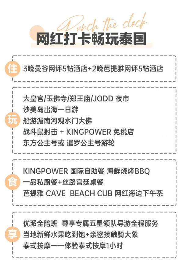 泰国6日游 聊城发团 纯玩 无购物 曼谷 芭提雅 沙美岛 ...... 发团时间 20230703-20230708 20230710-20230715 价格 4280 4580 报名电话 0635 8681234