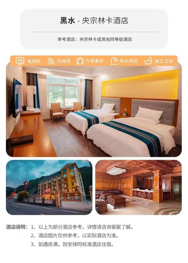 (3)由于黑水县部分特殊情况不定时的交通管制或者修路,会对出行和游玩景区时间做一些调整,望知悉!