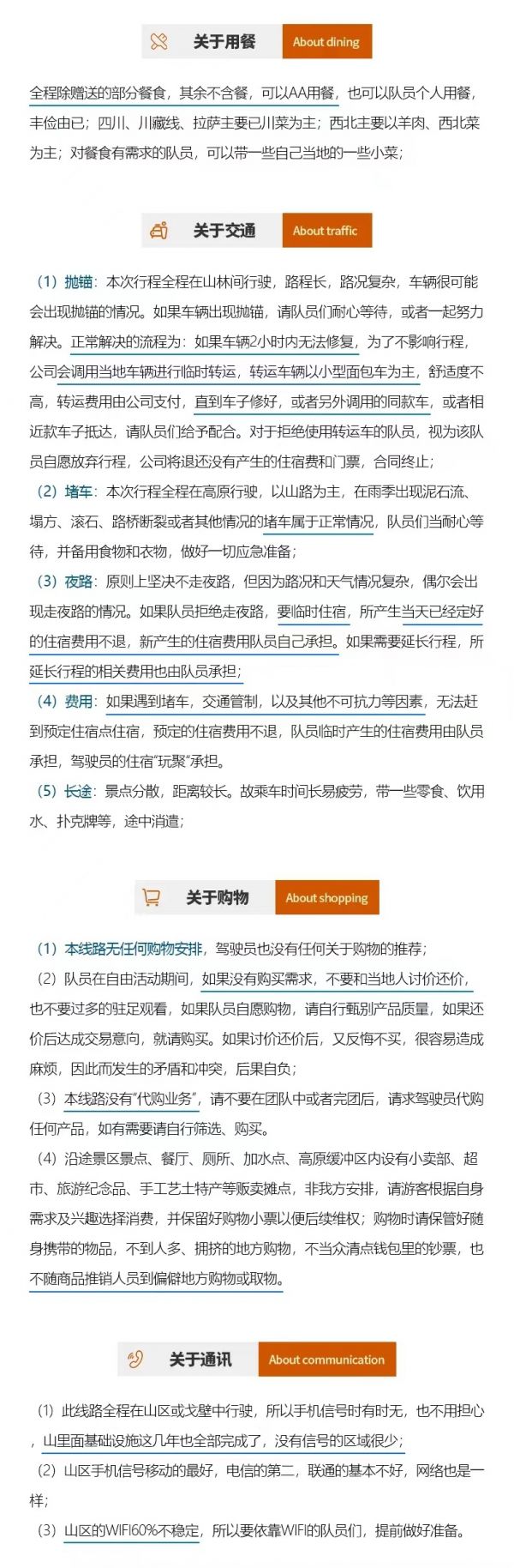 3. 建议队员们在集合日抵达成都后,可在市区采购一些旅行用品,如零食、佐餐小菜、药品等;