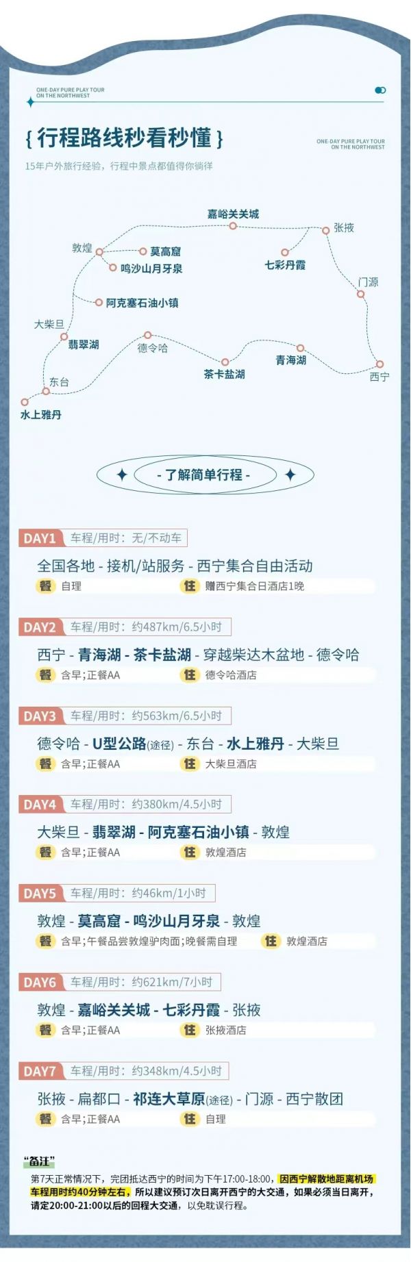 2.当天一路人烟稀少,请大家务必准备好饮用水及干粮。柴达木盆地公路开阔,行车速度较快,自由活动时一定听从领队指挥,注意安全