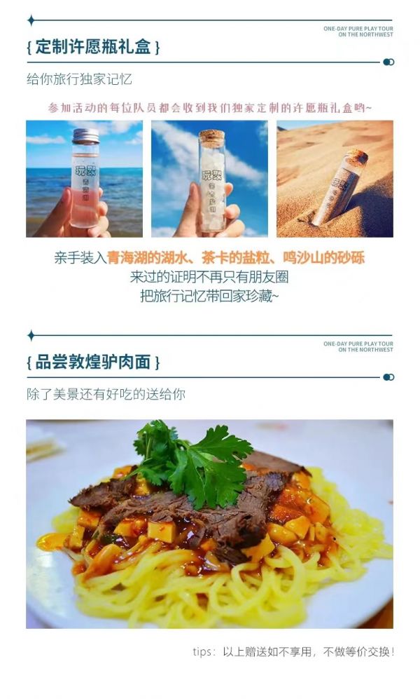 tips:西宁集合酒店为赠送酒店,酒店以实际安排为准均不退不换不指定,如要更改酒店产生的费用需要自行承担。(4)品尝敦煌驴肉面。