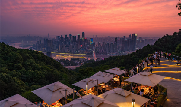6月的傍晚,重庆嘉陵江畔,夕阳的余晖为江面、街道抹上了一层淡淡的粉,显得格外动人。与江面的静谧不同,街道上人流开始涌动,炊烟袅袅升起,这才刚刚进入一天中最喧闹的时段。