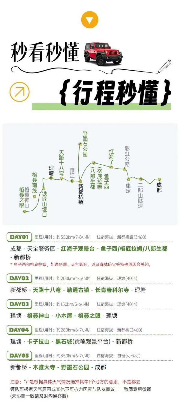 注:4人越野小团不会额外收取鱼子西/格底拉姆/八郎生都摆渡车费用。