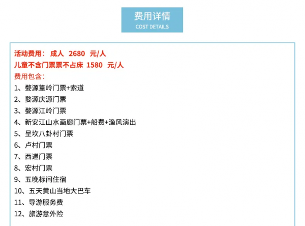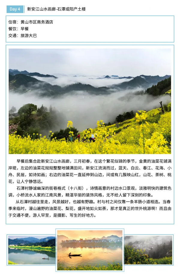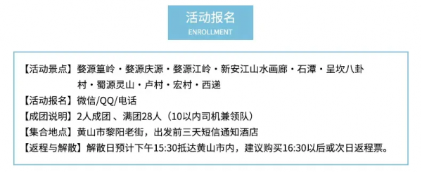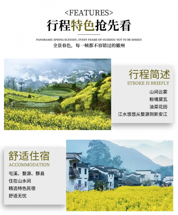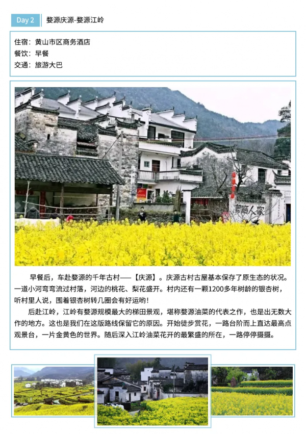 住宿:5晚屯溪标间住宿或婺源一晚农家住宿和西递客栈住宿