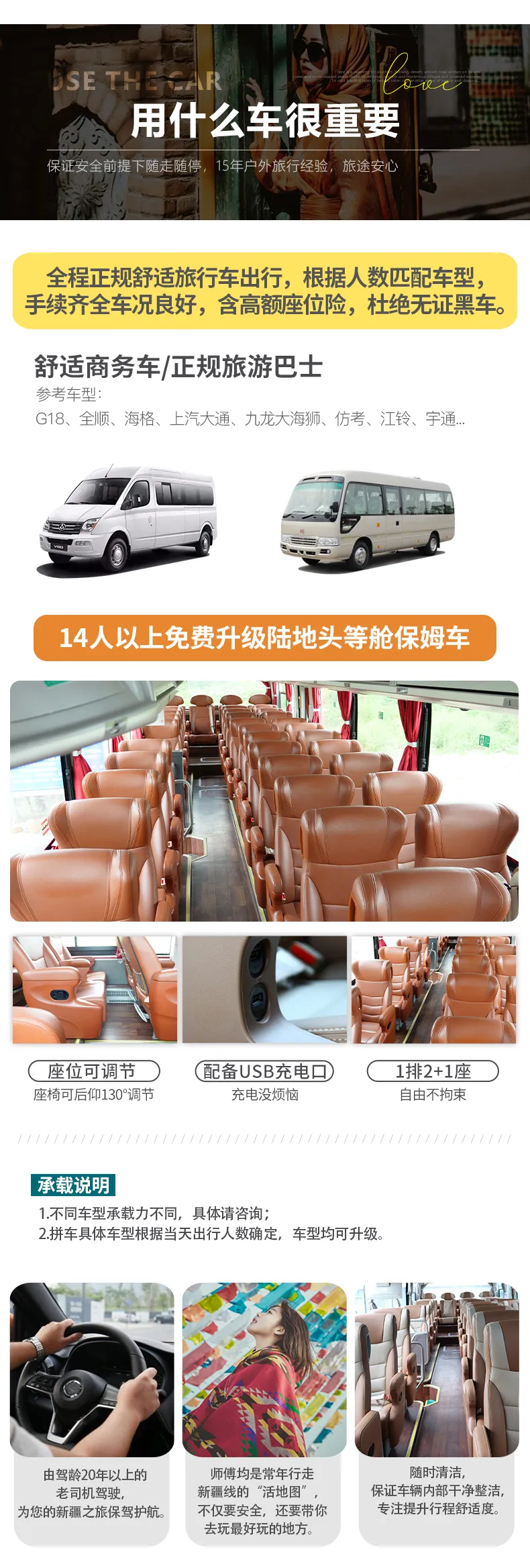 服务:12人及以上提供持证正规领队服务;12人以下,由经验丰富的司机带队,无单独领队服务,司机不进景区,敬请谅解。