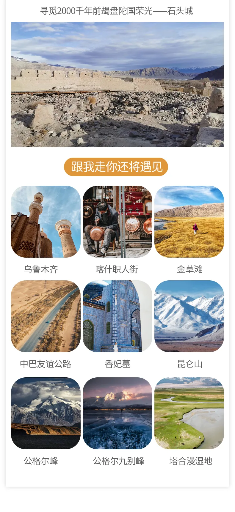 在帕米尔高原上有一座两千多年的【石头城】,2200年前的汉代,这里是西域三十六国之一的蒲犁国的王城, 喀什、 莎车、 英吉沙及 叶城通往帕米尔高原的数条通道都在此地汇合。这些城墙上的凹陷处,在古代时是佛龛,每一个洞窟中都有佛像。玄奘大师返回途中曾经落脚此处,为国王及群臣讲经说法。站在石头城遗址的遥望台吗,上远眺,东面是巍巍的喀喇昆仑山,西面是白雪皑皑的兴都库什山,南面是帕米尔高原的萨雷阔勒岭,北面能看到冰山之父慕士塔格峰。