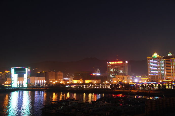 威海码头的夜景更让人们向往,附近高楼在海中折射出的倒影,让威海码头显得无光十色,也让我体会到了什么是真正的灯火阑珊。