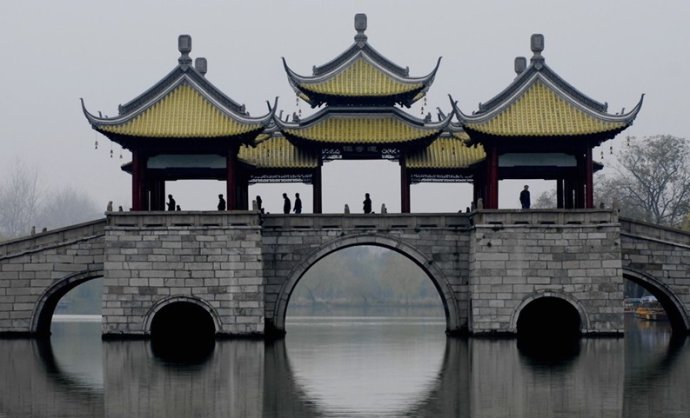 不知不觉中,我们已经进入了二十四桥景区。“二十四桥”出自唐代著名诗人杜牧的诗句“青山隐隐水迢迢,秋尽江南草未凋;二十四桥明月夜,玉人何处教吹萧”。