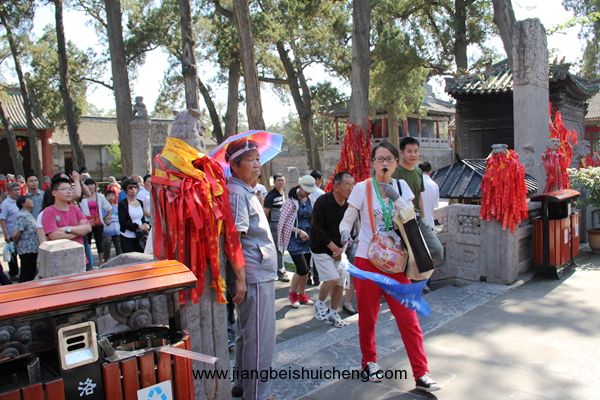 穿过仪门,你将看到一条我国关庙中惟一的石狮甬道。在长约35米的古甬道上,共有大小石狮104尊安坐两侧甬柱顶上,大狮姿态安详,小狮活泼可爱,百狮百态,让人称奇。