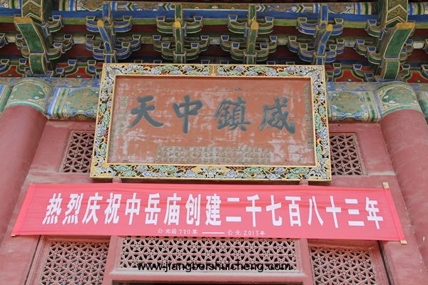 出天中阁沿甬道拾级而上,其后便是木结构配天作镇枋。它原名叫“宇庙坊”,古时称中岳为土神,意思是以地配天。