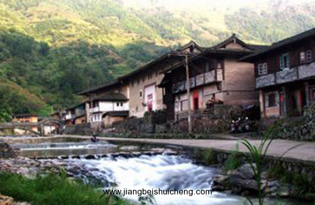 塔下村是一个中国典型客家村落。这里两座自南而北的蜿蜒大山,如巨臂揽住一道生机勃勃的峡谷,山中古木参天,碧绿如黛;竹林茂密,翠接云天;林阴深处,青气浮浮;淡淡霭雾,划出几道弧线,托出村落恍若蜃楼的起伏檐角。一道弯弯曲曲的山溪从峡谷中穿过,溪水快快活活地流淌,水色清明澄碧。清纯如酿的空气,让人嗅出许多逝去的年代,追寻历史行走的印记。为敬奉先祖,弘扬祖德,塔下张姓族人于明朝后期在村庄东面山坡、肇基始祖原住地上建造了“张氏家庙”德远堂。家庙后面是一片眉月形斜坡的草地,宛若天然地毯。草地连着一片葱郁的风水林,树林随着山峰向上延伸,直入云天,风吹林涛,气势磅礴。版权所有,山东聊城聊之旅国际旅行社有限公司,转载必究!家庙前是一口半圆形池塘,塘中鱼儿遨游,庙宇疏影,给人增添了幽美的意境。池塘前边两侧石坪上耸立22支高过10米的石龙旗杆,杆柱浮雕蟠龙,腾云驾雾,势欲腾飞。村中那条奔流不息的溪流,每天都把清澈和洁净送到家家户户,这条与村民息息相关的溪流,建国前从村头到村尾只有三座木桥。若遇山洪暴发,木桥被冲毁,只相隔30多米宽的两岸村人便中断过往,后来在热爱家乡的侨胞资助下,溪流上建造了11座石拱、钢筋水泥桥,使两岸村庄衣带相连。小桥流水、土楼人家,把塔下村装点得分外妖娆。阳光灿烂的清晨,村妇们提着木桶,领着孩子,到溪边洗衣,把鲜艳的色彩和款款的谈笑声一起流进水里,闪闪烁烁。