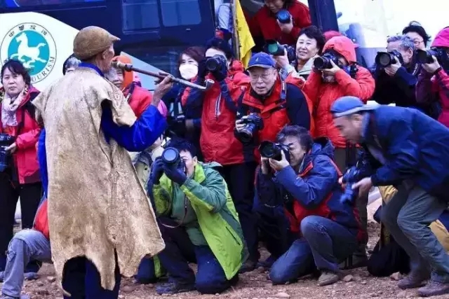 看到主人公的到来,摄影师们兴奋异常。老王驾轻就熟地跟摄影师们交涉起来,向他们介绍大片拍摄最佳的时间和角度。