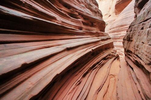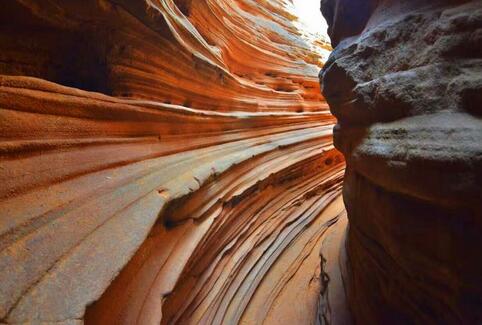波浪谷是一种红砂岩地貌,因岩砂上的纹路像波浪,被叫做"TheWave",即波浪。上世纪80年代,人们在美国亚利桑那州和犹他州交界处发现了波浪谷,神奇的外观和极高的科研价值使其成为了世界八大岩石奇观之一。而靖边的波浪谷也有着与美国波浪谷媲美的红砂岩峡谷。中国靖边波浪谷和美国波浪谷的差距并不大,都是红砂岩地貌,靖边波浪谷更加年轻,只有6000万年,很多砂土还没来得及凝固为岩石,地处黄土高原与毛乌素沙漠交汇地带的靖边县龙州乡。