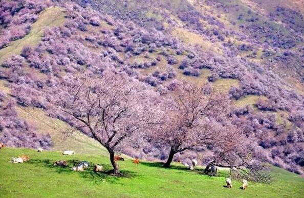 早餐后出发前往【中华福寿山景区】位于霍城县西北的大西沟乡境内,距伊宁市90公里,距县城50公里。漫山遍野的杏花将景区装点的风光如画,美若仙境。景区内生长各类野果约60余种,以野酸梅、野苹果、野核桃、杏、山楂为多,共有野生果树几十万株。野酸梅是亚洲独有的、唯一分布在伊犁河谷的罕见物种,其学名为樱桃李。大西沟乡是世界罕见、亚洲唯一野樱桃李的原产地,被国家命名为“中国野生樱桃李之乡”。