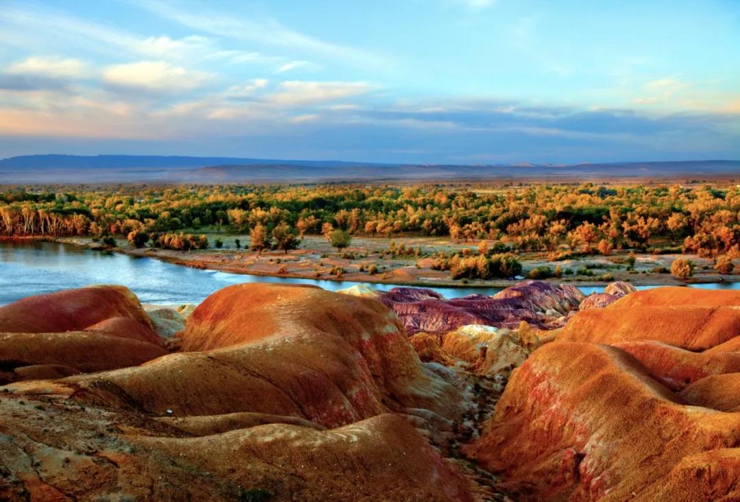 许多去过新疆的朋友应该对它的夕阳有着极深的印象,晚上七八点太阳才下山实在太常见了。在阿勒泰,夕阳有一个绝佳的“落日伴侣”,那就是五彩滩。