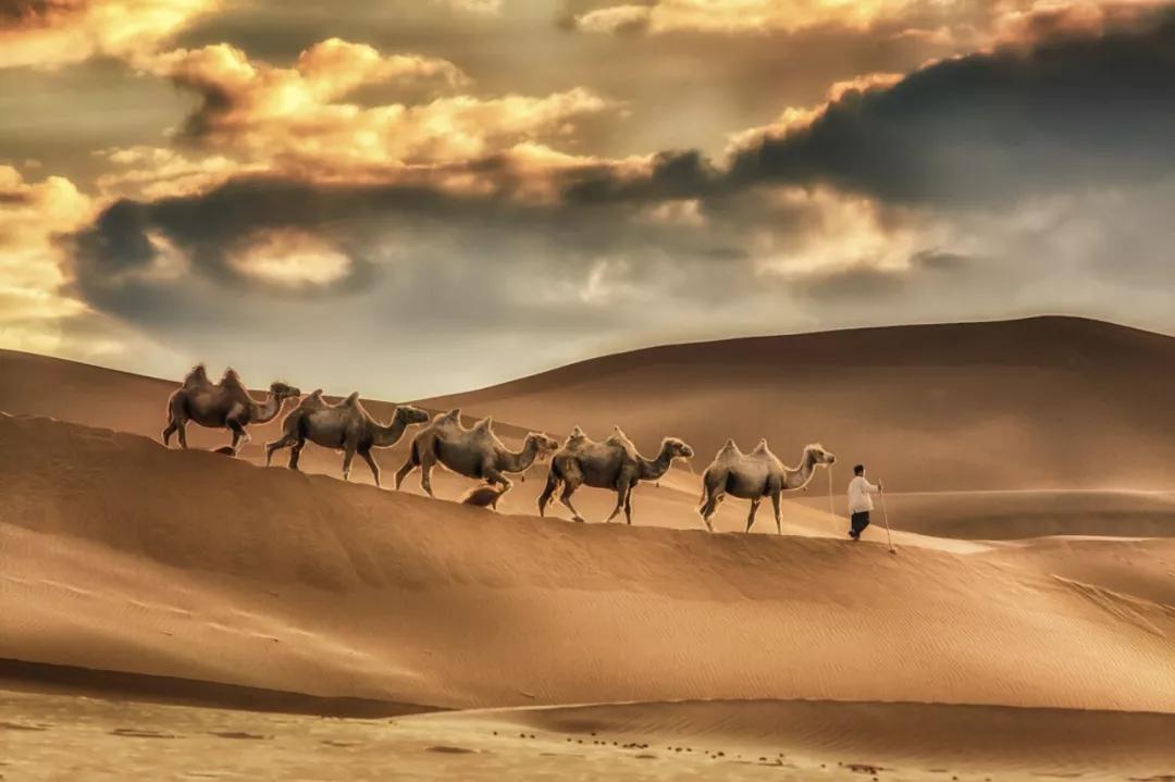 若你想逐日,可以在库木塔格沙漠来一次沙漠徒步之旅。一浅一深的脚印,目光所及之处都是金灿灿的沙粒,行进途中还有沙窝、沙山等壮观景象在等待着你。