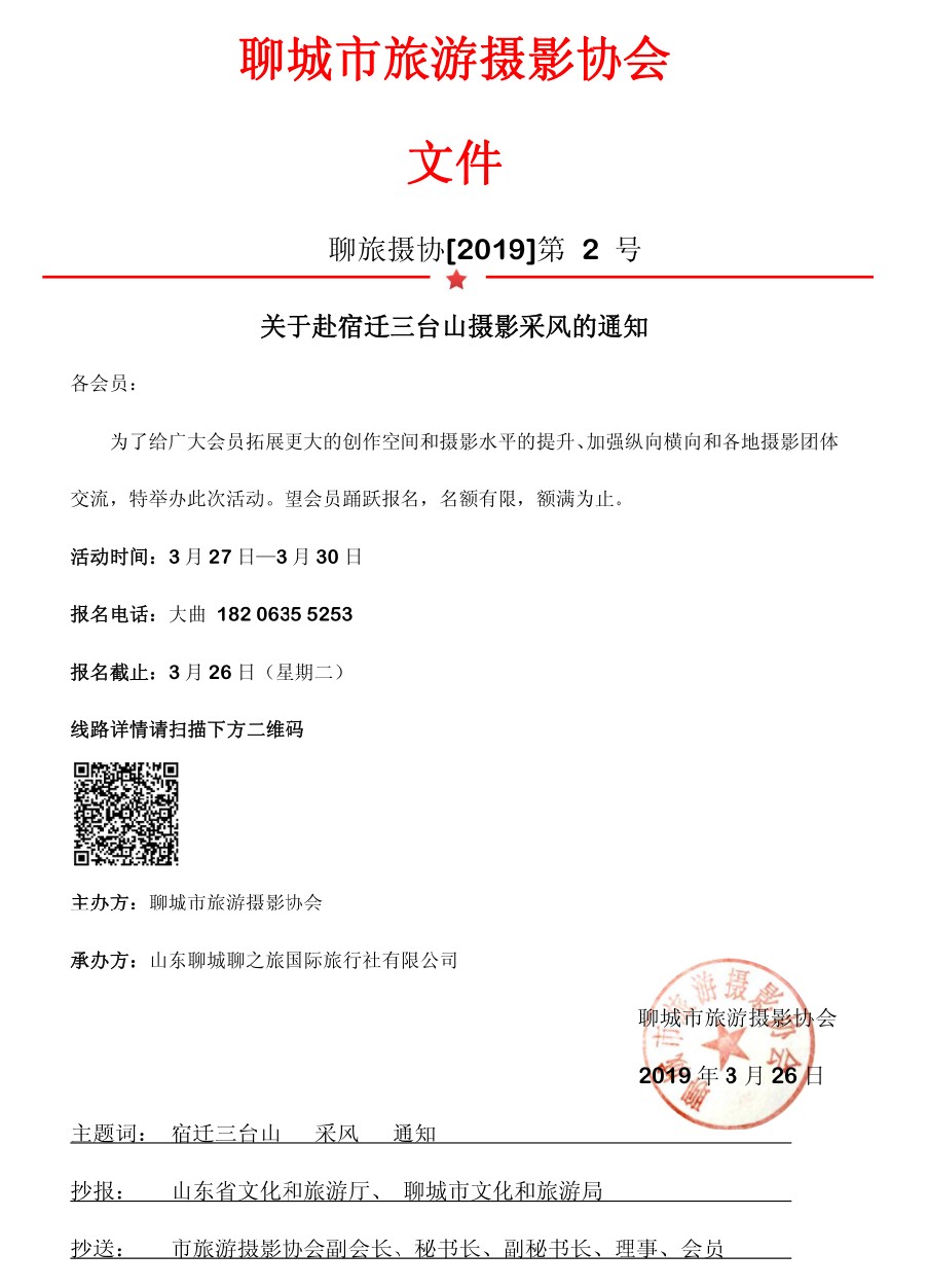 关于赴宿迁三台山摄影采风的通知