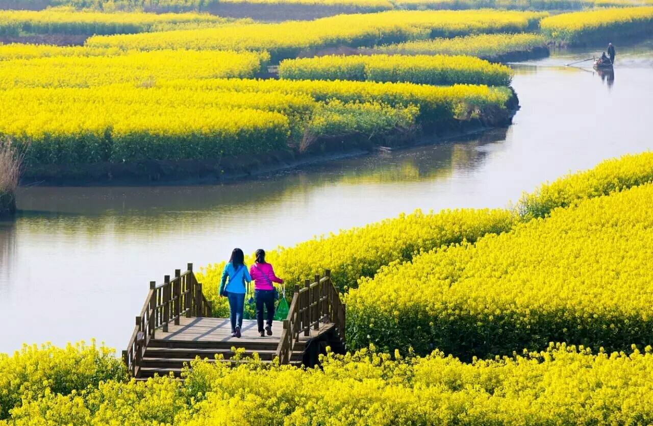 【垛田油菜花】千百垛田漂浮于水中,云蒸霞蔚,煞是壮观;江苏兴化的油菜花,开到荼蘼;在这里,花垛田的情调不输威尼斯水系的复杂,每一处的转角,都是迷途在花田里的自说自话;2011年经过网络评选,兴化花海入选中国最具影响力油菜花海第一名;与享誉世界的普罗旺斯熏衣草园、荷兰郁金香花海、京都樱花并称,跻身全球四大花海之列。