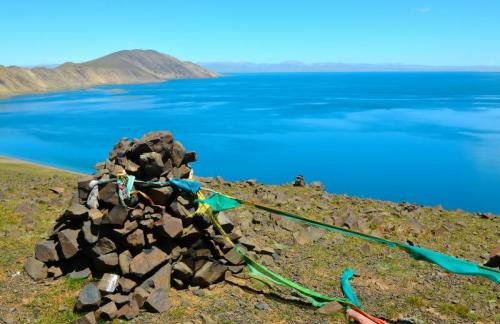【玛旁雍措】是世界上多个宗教认定的圣湖,每年印度、尼泊尔和西藏的香客纷到此朝圣沐浴以求功德。基乌寺旁边的一个小山坡是拍摄玛旁雍措的绝佳位置,湖水水色深蓝,依旧清澈明净,狂风吹过,经幡随风荡漾;而远处的神山就安静的沐浴在夕阳中,夜宿塔尔钦。