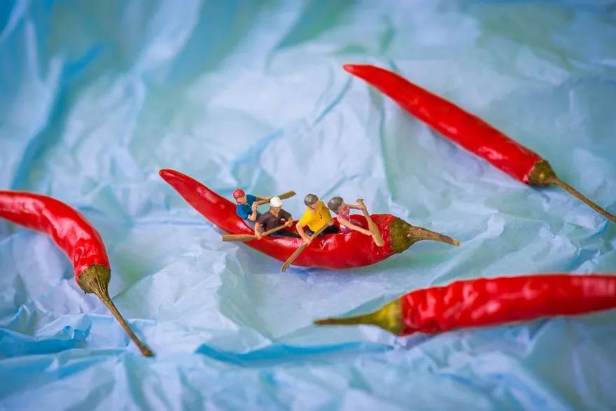来自匈牙利布达佩斯的美食摄影师彼得近三年改变了以往的摄影风格,他利用微缩模型、食物和日常用品搭配组合,创造了一个名为“Tiny Wasteland”(袖珍荒原)的摄影系列。