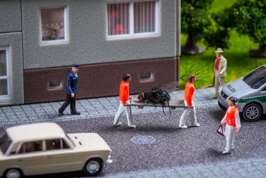 即使明明知道这些照片是“假”的,只是在用小模型在模拟现实生活场景,可因为摄影师奇趣无限的想象力,也会让观众忍不住一张张翻下去,看看下一张又会出现什么意料之外的场景。