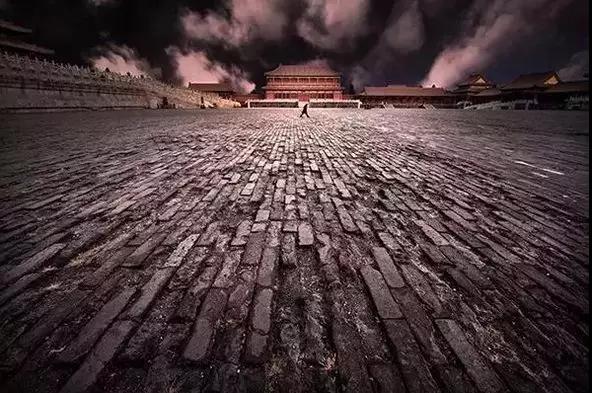 蓝色的天空,红色的宫墙,屋檐的影子打在宫墙上,加强了色彩的对比,让画面更加简洁。