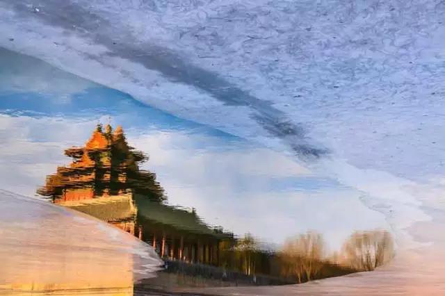 即使在冬季,也能拍出好的倒影作品。在冬季冰封的永定河上,只拍摄故宫角楼的倒影,再后期进行180°倒转,营造出亦真亦幻的独特意境。