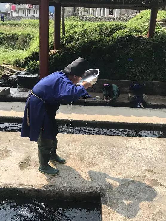 苗家的奶奶,用盆子舀起泉水,尽情的享用起来,小编也按捺不住,跃跃欲试,尝了一下,又凉又甜,沁人心脾。