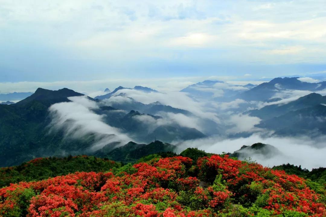 这里的杜鹃为高山矮杜鹃,分为红、白、紫三色,每年四、五月间开放,花期一周左右,阳光照耀下,能映红半边天,身处其中,无不惊叹它的美好。